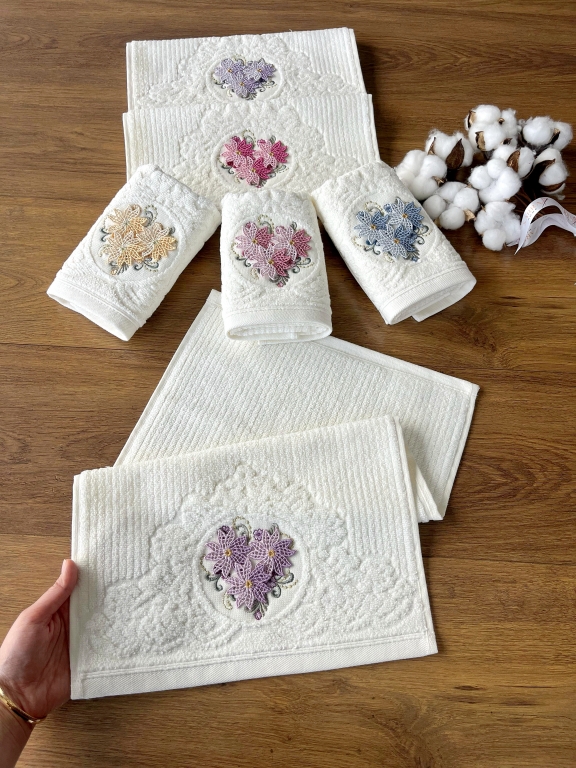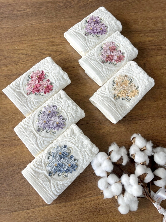30x50 SARRA 3D BUKLE KREM 6'LI HAVLU - YILDIZ