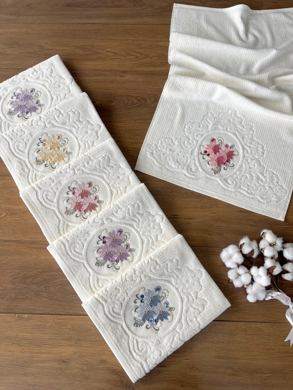 50x90 SARRA 3D BUKLE KREM 6'LI HAVLU - YILDIZ