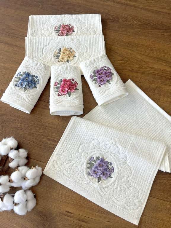 30x50 SARRA 3D BUKLE KREM 6'LI HAVLU - MENEKŞE